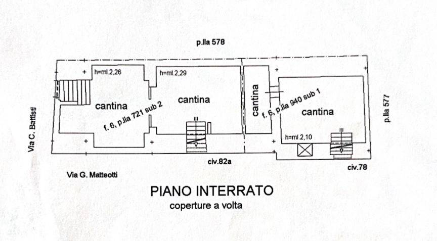 Al piano seminterrato, troviamo due ampie cantine con volte a botte, di circa 70mq totali, accessibili da strada tramite scala.
